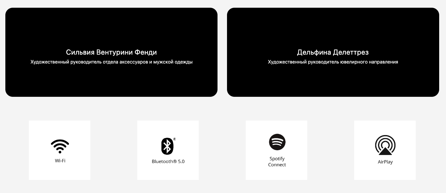 - Беспроводное подключение: поддержка Wi-Fi, Bluetooth 5.0, AirPlay 2 и Spotify Connect для удобного стриминга музыки.