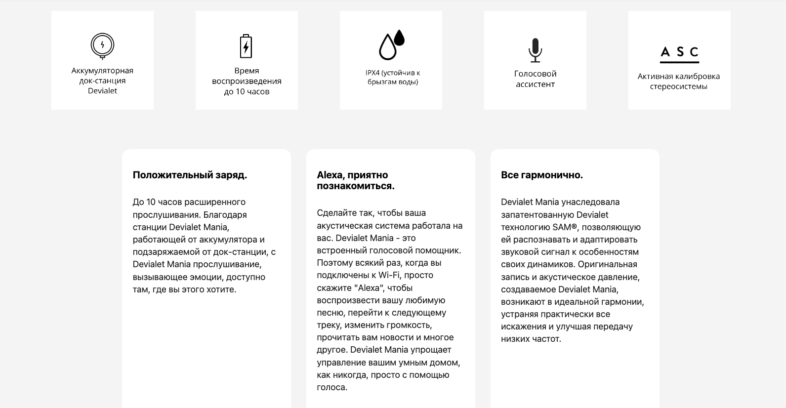 - Совместимость с Devialet App: управление настройками, эквалайзером и multiroom прямо с телефона.