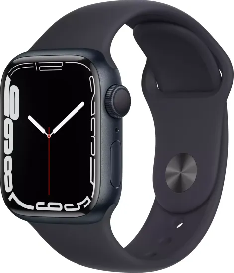 Apple Watch Series 7, 41 мм, корпус из алюминия цвета «тёмная ночь», спортивный ремешок «тёмная ночь»