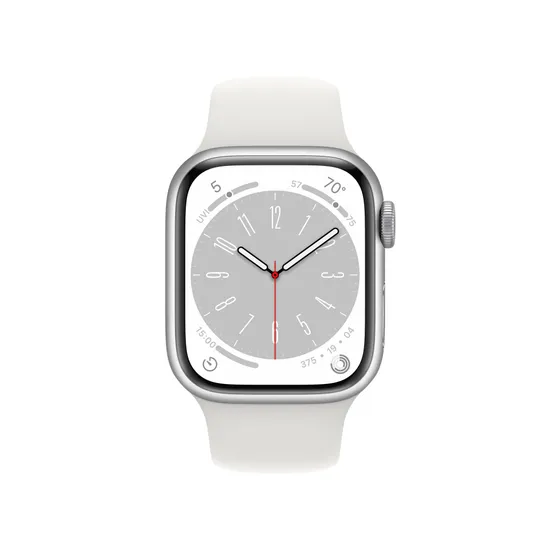 Apple Watch Series 8, 41 мм, корпус из алюминия серебристого цвета, спортивный ремешок белого цвета