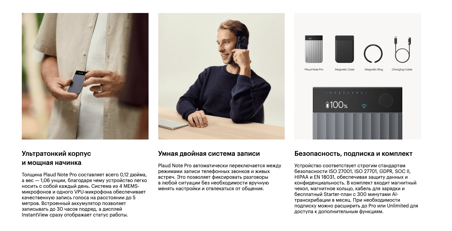 Диктофон Plaud Note Pro с искусственным интеллектом ChatGPT, 64Gb, серебристый