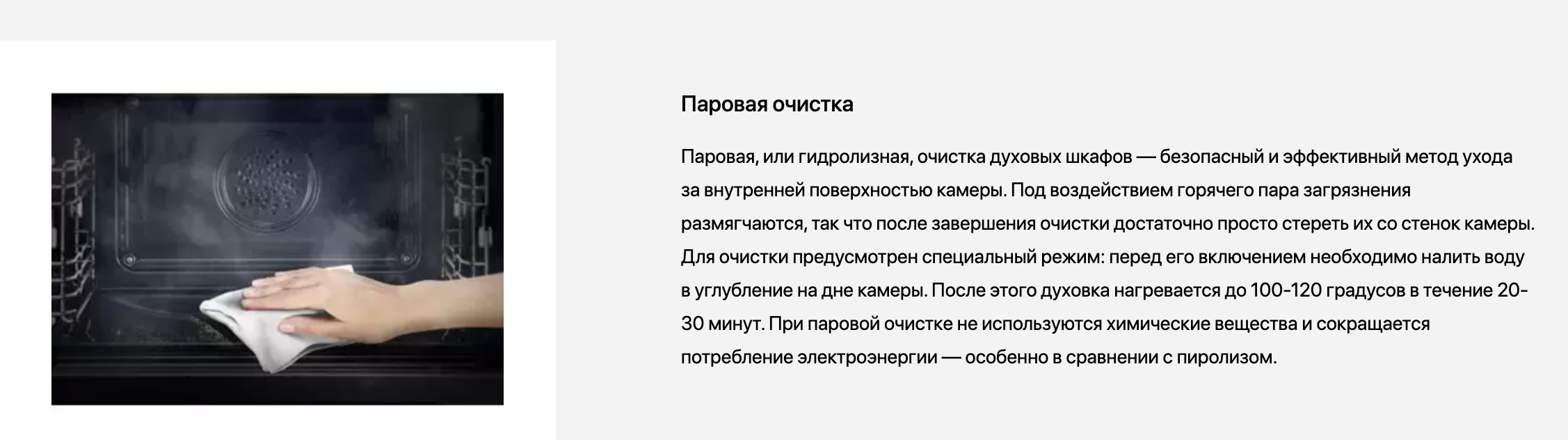 Особенностью модели является его внутренняя структура. Объем внутреннего пространства составляет 71 литр, что позволяет готовить большие порции еды одновременно. Внутри шкафа есть пять уровней для установки противней, что делает его удобным для приготовления различных блюд. Внутренняя облицовка шкафа выполнена из высококачественного эмалированного материала, который легко очищается от загрязнений. Сенсорное управление делает использование духового шкафа простым и удобным.