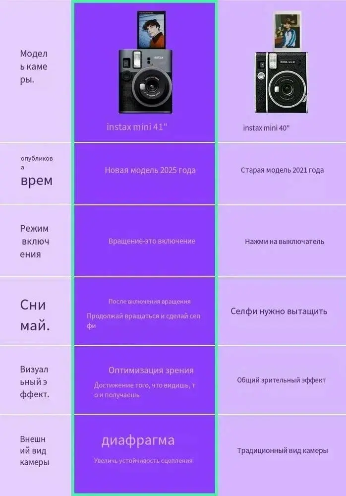 Instax Mini 41 фотокамера моментальной печати, выполненная в стильном и привлекательном минималистичном дизайне.