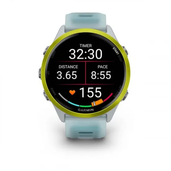 Garmin Forerunner 570 Slate Gray / Black (010-02971-00) — премиальные GPS-часы для бега и триатлона. Лёгкий сланцево-серый алюминиевый корпус сочетается с чёрным силиконовым ремешком. Яркий AMOLED-дисплей 1,3″ защищён сапфировым стеклом Solar Sapphire, которое подзаряжает аккумулятор при солнечном свете.