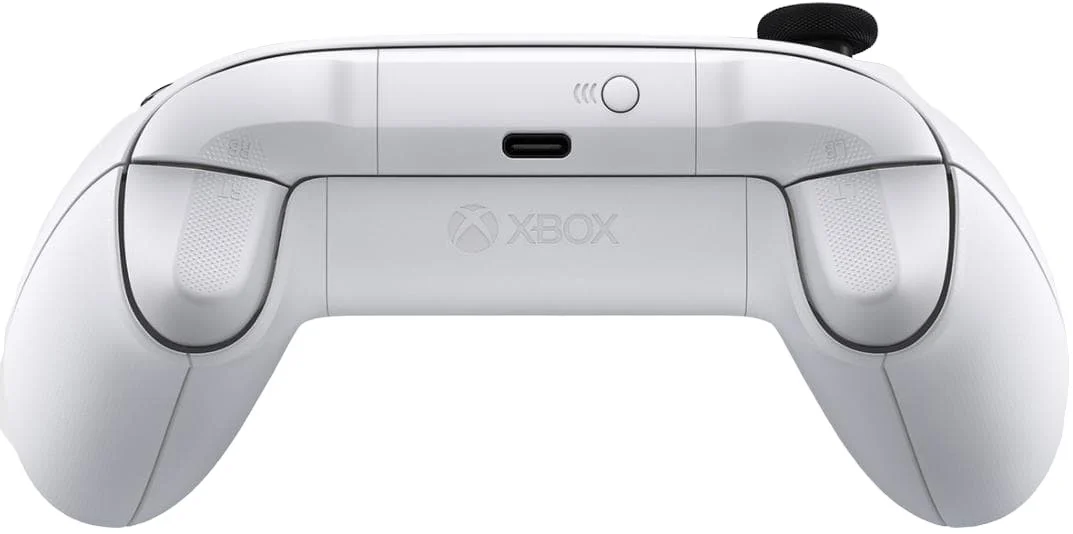 Геймпад Xbox Series X и Xbox Series S во многом повторяет контроллер серии Xbox One, но с рядом улучшений. Курки получили текстурированную поверхность, изменилась крестовина, а также появилась кнопка для быстрого обмена скриншотами и игровыми видео. Вместо micro USB для зарядки игрового контроллера (при наличии Play and Charge Kit, приобретается отдельно) используется USB Type-C.