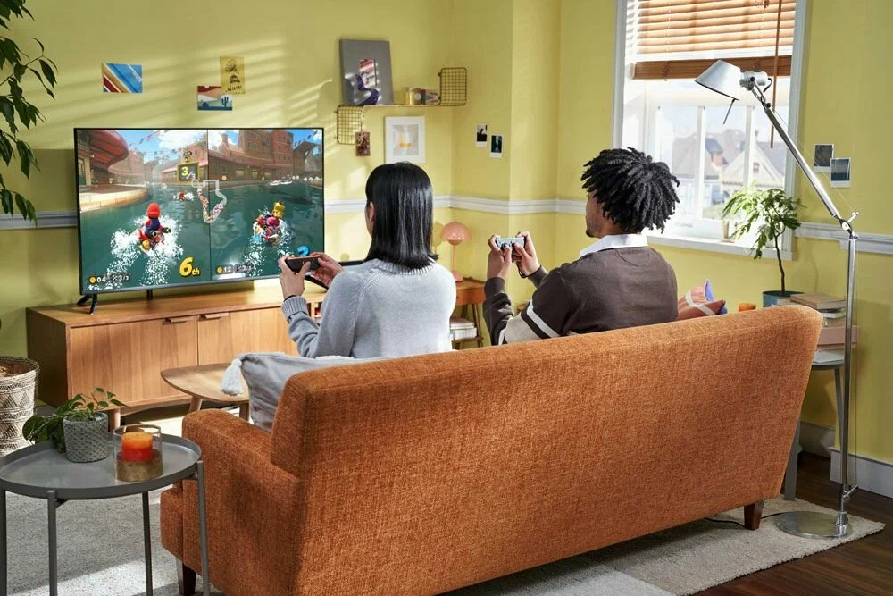 Начните свое приключение на Nintendo Switch 2 с этим комплектом, который включает в себя систему и полную загрузку игры Mario Kart World, эксклюзивную для Nintendo Switch 2. Nintendo Switch 2 — это следующая ступень эволюции системы Nintendo Switch, наполненная обновлениями и забавными способами подключения и совместной игры! Исследуйте Nintendo Switch 2 Ваши игры оживают на ярком 7,9-дюймовом экране 1080p, демонстрируя мощную производительность обработки и графики системы. Обновленная док-станция также поддерживает разрешения до 4K и частоту кадров до 120 кадров в секунду для совместимых игр и телевизоров. Модернизированные контроллеры Joy-Con 2 фиксируются с помощью магнитных разъемов, и каждый контроллер можно даже использовать в качестве мыши в совместимых играх. Кроме того, вы по-прежнему можете наслаждаться совместимыми играми из своей существующей библиотеки Nintendo Switch. Общайтесь с друзьями и семьей с помощью GameChat После настройки GameChat запустите его, нажав кнопку C на правом Joy-Con 2, это удобный способ голосового чата с друзьями, демонстрации игрового экрана и подключения через видеочат с совместимой камерой USB-C (продается отдельно). Nintendo Switch 2 также имеет встроенный микрофон, который отфильтровывает шум вокруг вас для кристально чистого звука. Это как проводить время вместе, где бы вы ни находились.