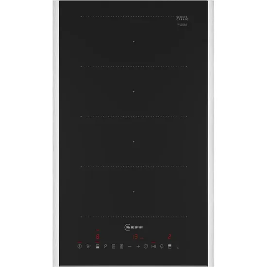 Индукционная варочная панель Neff T63TDX1L0 типа «домино» черного цвета выглядит стильно и современно благодаря рамке из нержавеющей стали. Компактные габариты (5,1×31,9×52,7 см) указывают на то, что ее можно устанавливать даже в небольших кухнях.