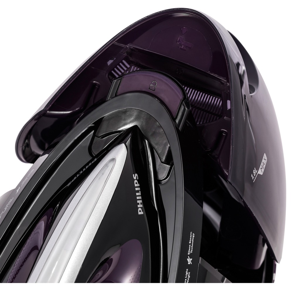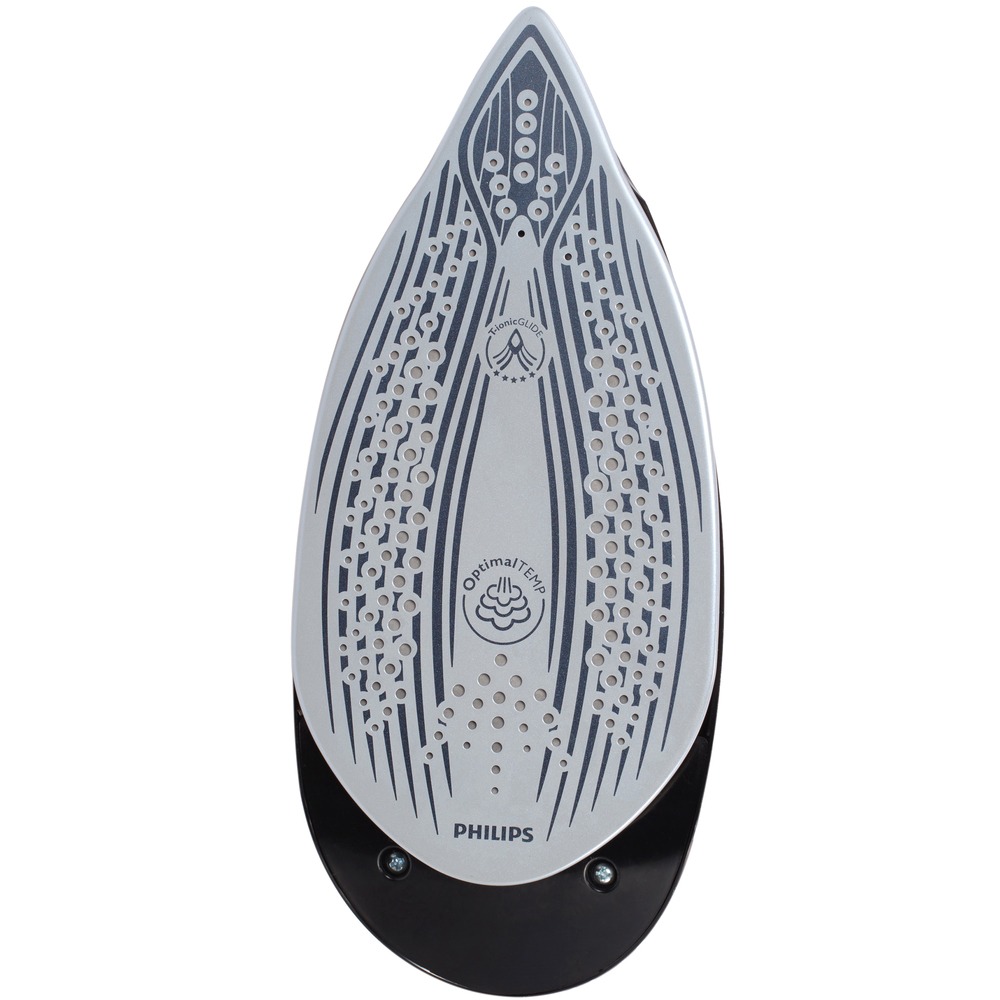 Подошва парогенератора выполнена из премиального материала Philips T-ionic Glide, который отличается высокой устойчивостью к повреждениям и царапинам. Она обеспечивает великолепное скольжение по ткани и позволяет быстро и легко гладить, не прилагая при этом особых усилий. Это делает процесс глажения более комфортным и менее утомительным, что особенно важно при работе с большим объемом одежды.