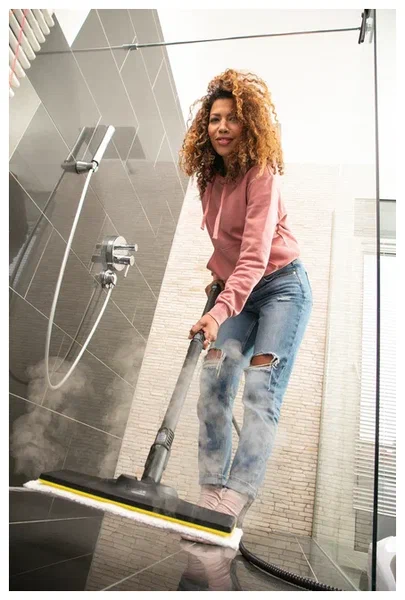 4-ступенчатый регулятор расхода пара на корпусе аппарата обеспечивает выбор оптимального режима обработки в зависимости от вида очищаемой поверхности и ее загрязнённости. Возможность добавления горячей воды в струю пара (функция VapoHydro) облегчает удаление стойких загрязнений, а широкий ассортимент принадлежностей позволяет решать любые задачи, например легко и тщательно очищать труднодоступные места.