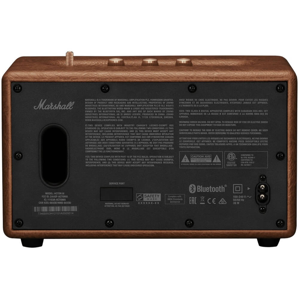 Acton III поддерживает Bluetooth 5.2, обеспечивая стабильное соединение на расстоянии до 10 метров. Приложение Marshall Bluetooth APP даёт возможность управления колонкой со смартфона, запоминает установленные настройки и позволяет передавать обновления «по воздуху». Для аналогово подключения есть разъём 3,5 мм.