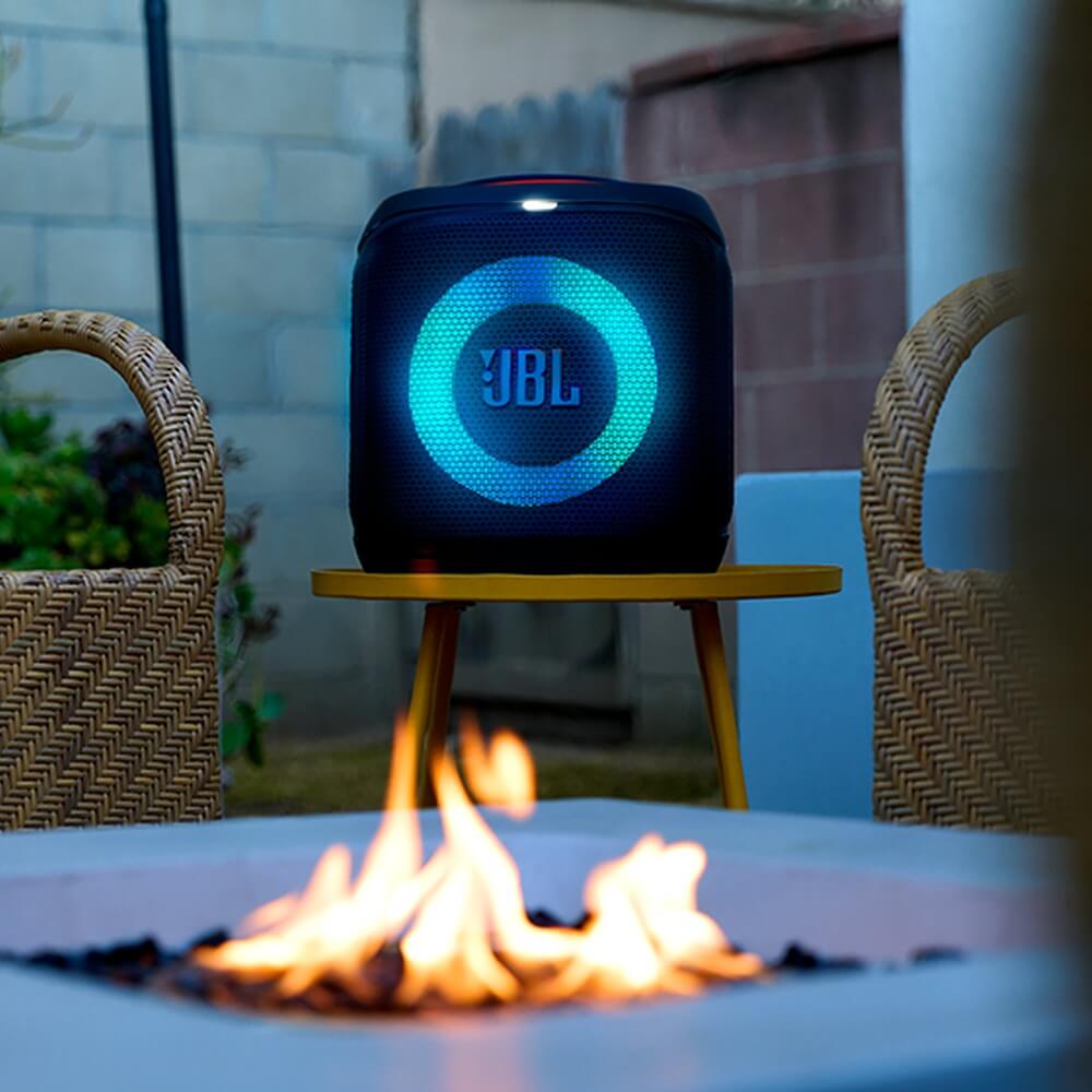 PartyBox Encore Essential — это колонка, которую можно взять с собой куда угодно, не жертвуя качеством звука и функциями. Это звук, который не теряется в шуме и создаёт настоящую атмосферу праздника. Она радует мощным звуком, динамической подсветкой и свободой подключения и возможностью использования где угодно благодаря встроенному аккумулятору. Модель разработана для тех, кто хочет иметь возможность устроить вечеринку где угодно – на даче, на пляже или прямо у себя дома.