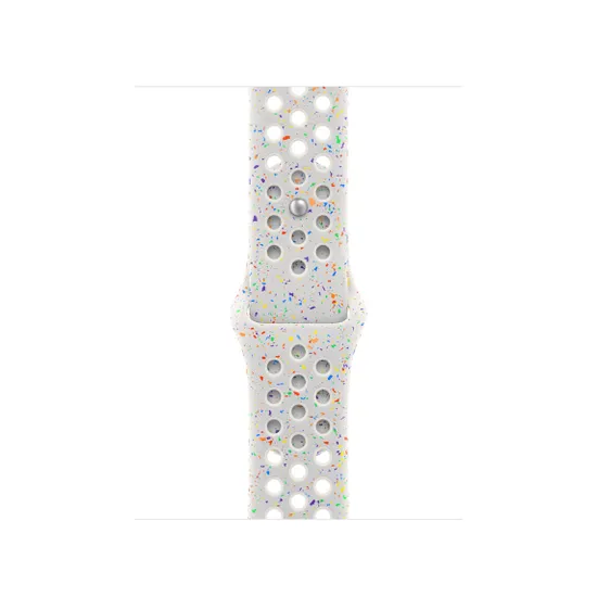 Спортивный ремешок Nike Sport Band, изготовленный методом прессования и обеспечивающий воздухопроницаемость, прочный и прочный, но при этом удивительно мягкий. Он состоит из разноцветных хлопьев, которые создают случайный узор, что делает каждую полосу совершенно уникальной. Гладкий, плотный материал элегантно облегает запястье и комфортно прилегает к коже. Новая алюминиевая застежка-защелка придает булавке свежий матовый оттенок.