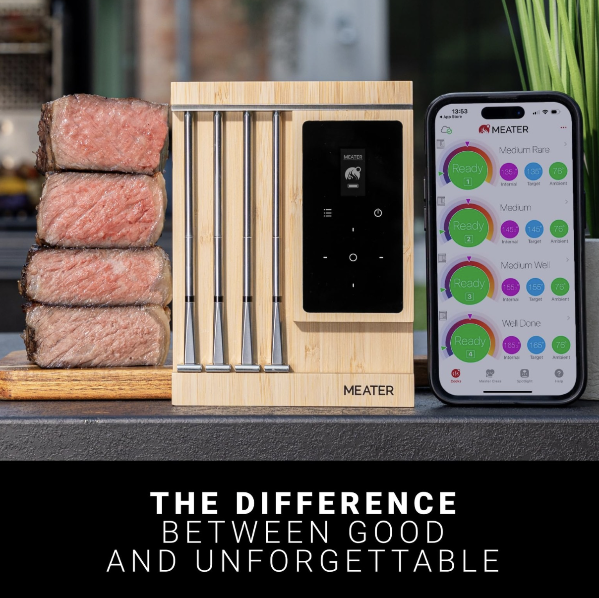 MEATER Pro XL — это наш термометр для мяса «четыре в одном». Четыре щупа позволяют удовлетворить предпочтения каждого, готовя несколько блюд одновременно до совершенства. С уверенностью готовьте любое мясо. Вы даже можете контролировать процесс приготовления прямо на OLED-экране зарядного устройства, не открывая приложение.