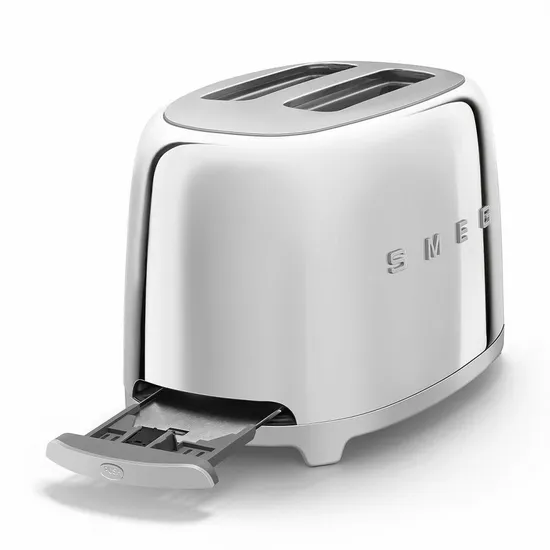 Прочный корпус тостера Smeg TSF01 изготовлен из нержавеющей стали и окрашен в элегантный розово-золотой цвет. Предусмотрены шесть уровней готовки, а также функция «багель», позволяющую поджарить тосты только с одной стороны. Встроены также удобные функции размораживания и подогрева.