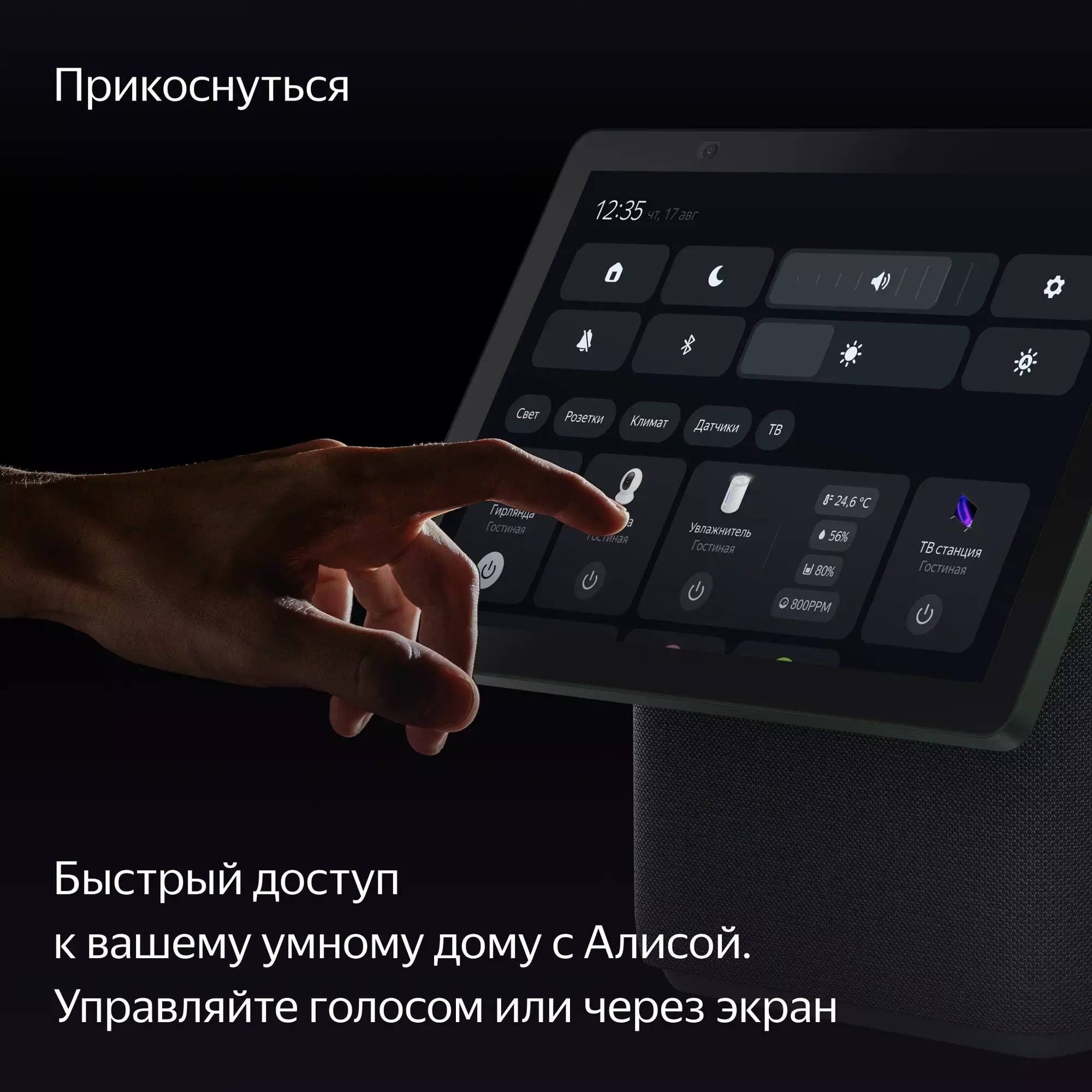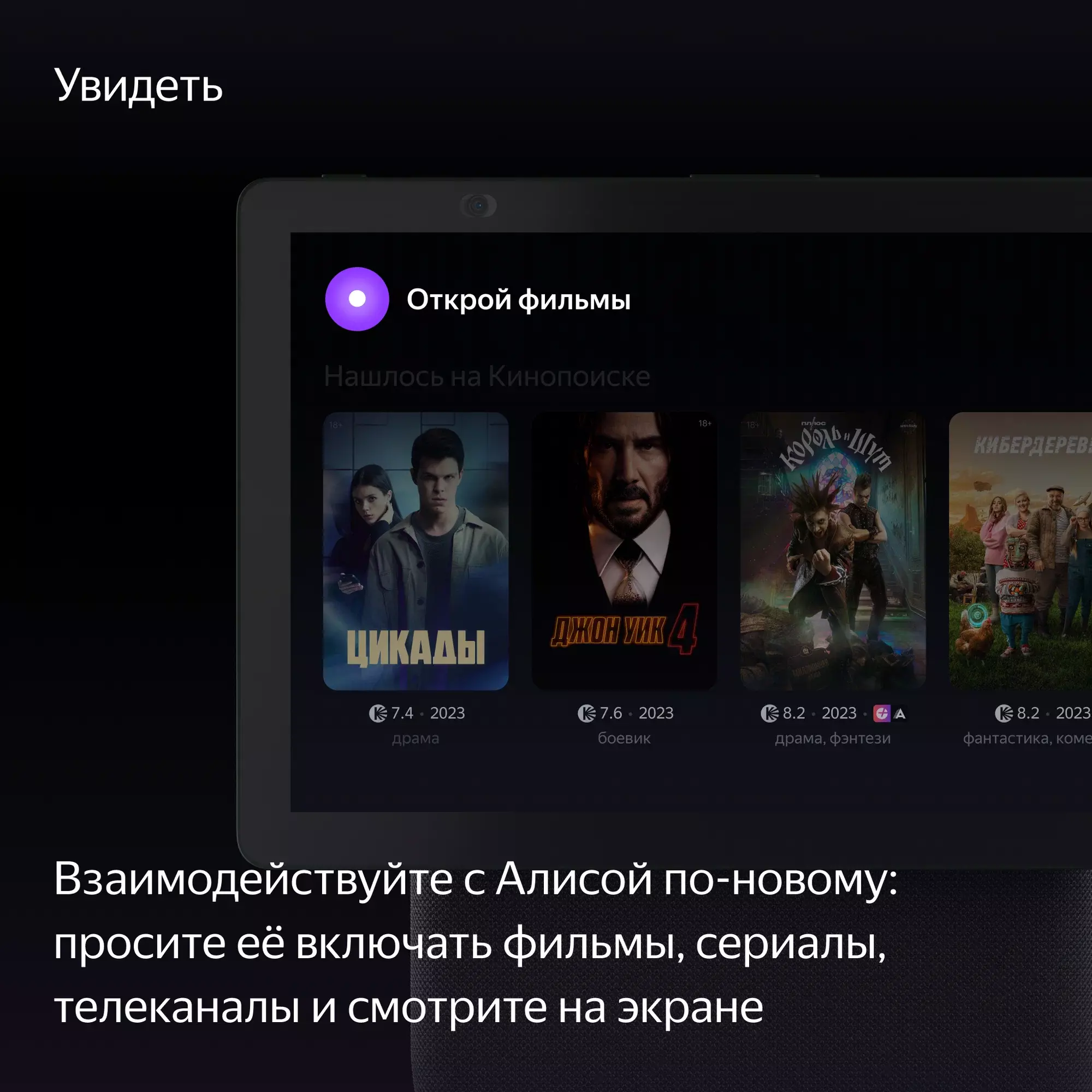Просите Алису искать и включать музыку, фильмы или сериалы, а потом управляйте контентом на экране касаниями: перематывайте, ставьте на паузу и выбирайте нужное. Смотрите телеканалы. Задавайте Алисе вопросы — и не только слушайте её ответы, но и смотрите их на экране. Или пользуйтесь браузером.