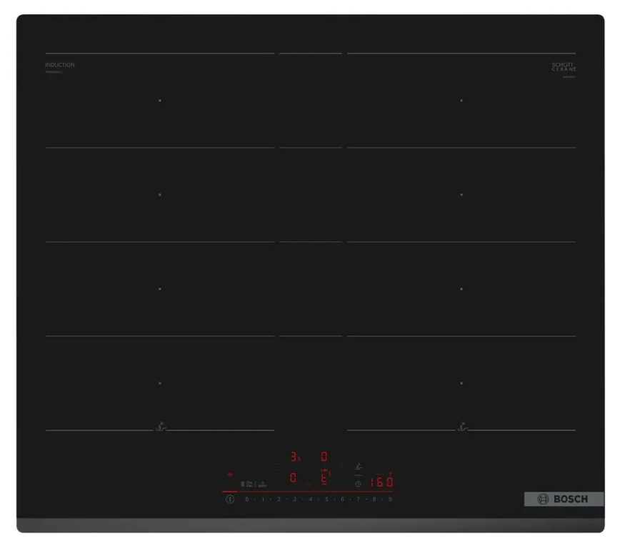 Варочная панель Bosch PXY 63KHC1E — это инновационное решение для современной кухни, сочетающее в себе стиль, удобство и передовые технологии. Система DirectSelect обеспечивает быстрый и интуитивно понятный выбор нужной зоны приготовления, уровня мощности и дополнительных функций. Благодаря расширенной индукционной зоне Flex, пользователи получают максимальную гибкость при использовании крупных кастрюль и сковородок. Функция PerfectFry Plus с сенсором жарения помогает добиться идеальной прожарки продуктов, исключая риск пригорания. Технология Easy Flex Zone адаптирует варочные зоны под потребности пользователя, обеспечивая максимальное удобство и эффективность. Интеллектуальная система управления вытяжкой автоматически регулирует её работу в зависимости от настроек варочной панели, создавая комфортные условия для готовки. Прибор оснащен 4 зонами приготовления, каждая из которых может быть настроена индивидуально для достижения наилучших результатов.