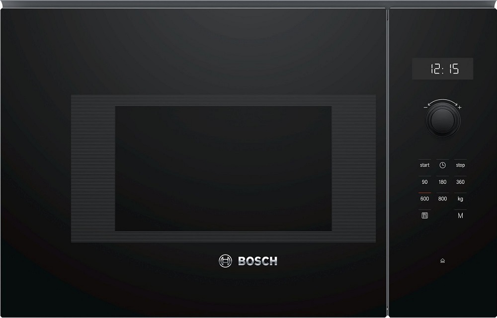 Встраиваемая микроволновая печь Bosch BFL524MB0 выпущена в привлекательном чёрном матовой цвете. Поэтому выглядит актуально и современно. Она относится к линейке Serie 6, отличающейся высокой функциональностью. Объём прибора достаточно скромен — 20 л. Поэтому он подойдёт для привычного разогрева пищи и приготовления небольшого по объёму блюда.